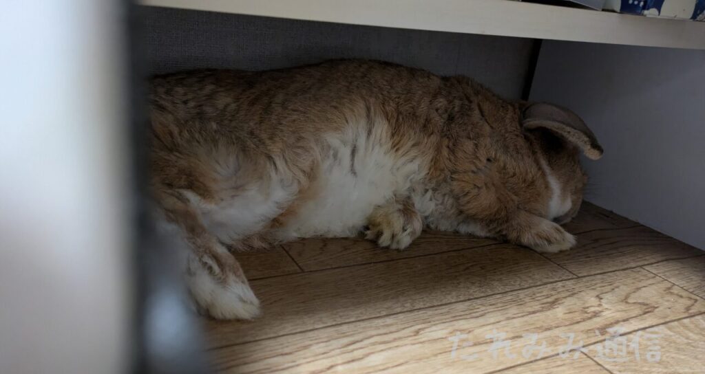 暑い時、寒い時に、お部屋の中で一番安全・安心・快適な場所を見つける天才うさぎさん。