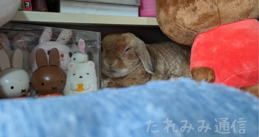 かわいいロップイヤーが「狭いところで安心してくつろぐ姿」は、私たち飼い主にとっても癒しのひととき。